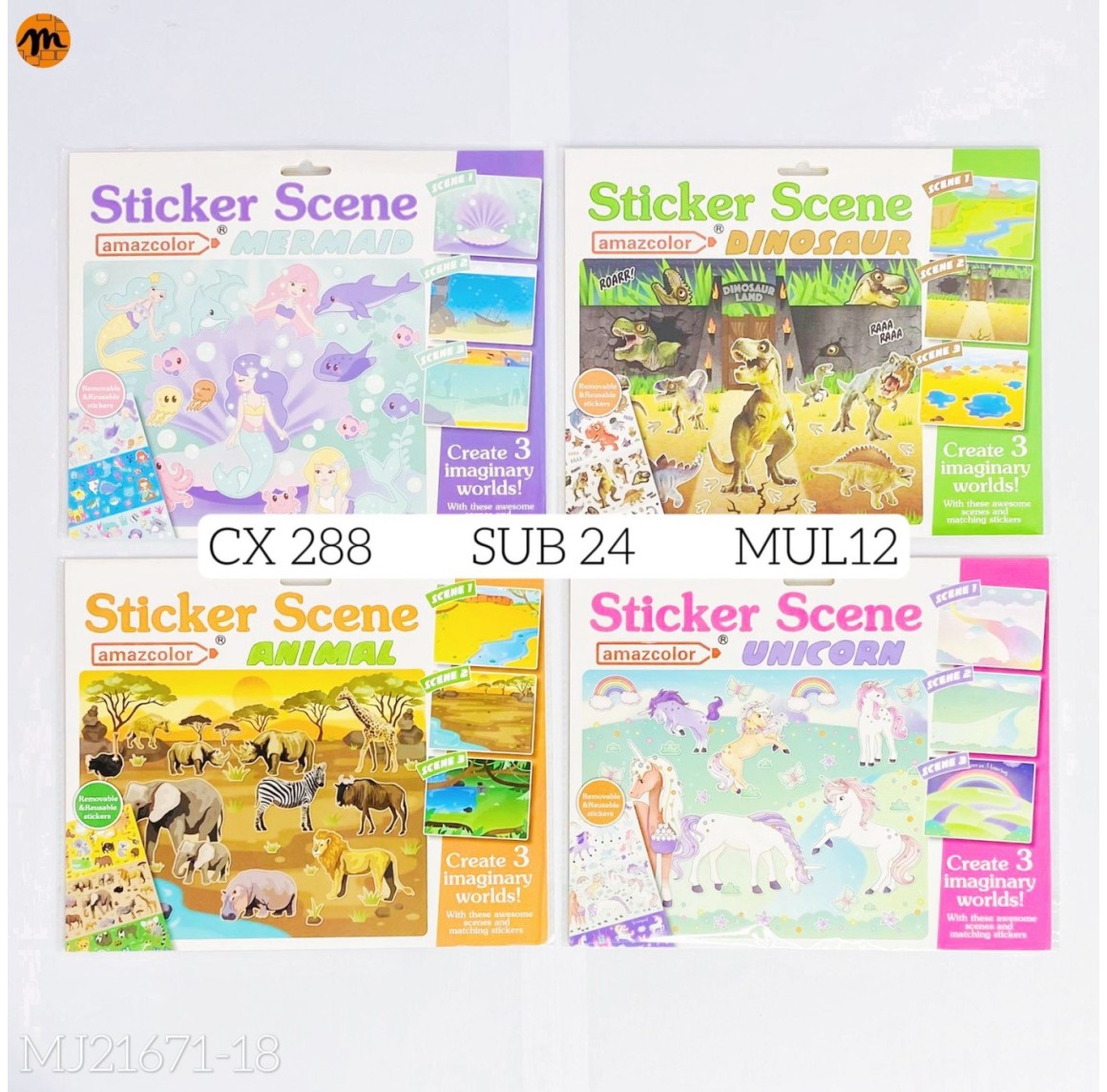 REF:E2-MJ 21671-18 CARTELA ADESIVADE PAPEL, COM DESENHOS CX288 PÇS SUB 72PÇS MUL/12