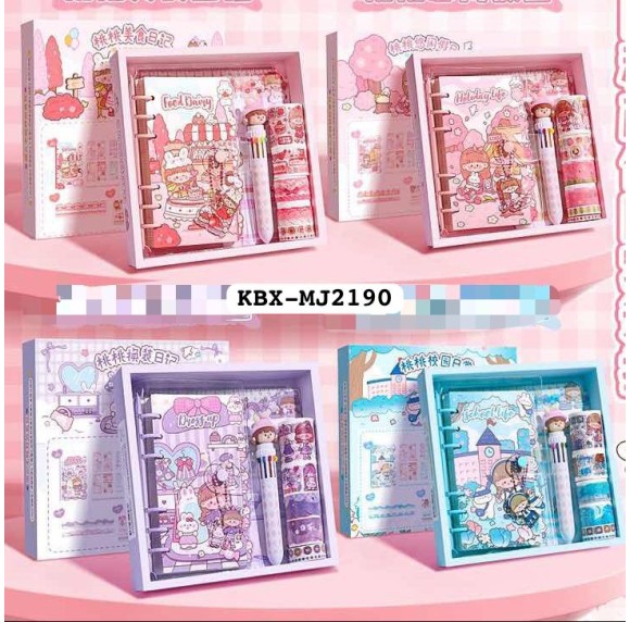 CADERNO KIT C/ CANETA, ADESIVOS. REF:KBX-MJ2190/A/B/C/D/----CX:40PÇS/MIN:20PÇS-MUL-20PÇS