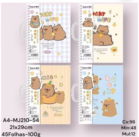 REF: A4-MJ-S210-54 CADERNO DE DESENHO CAPIVARA ----------------- CX:96PÇS/MIN:48PÇS-MUL/24PÇS