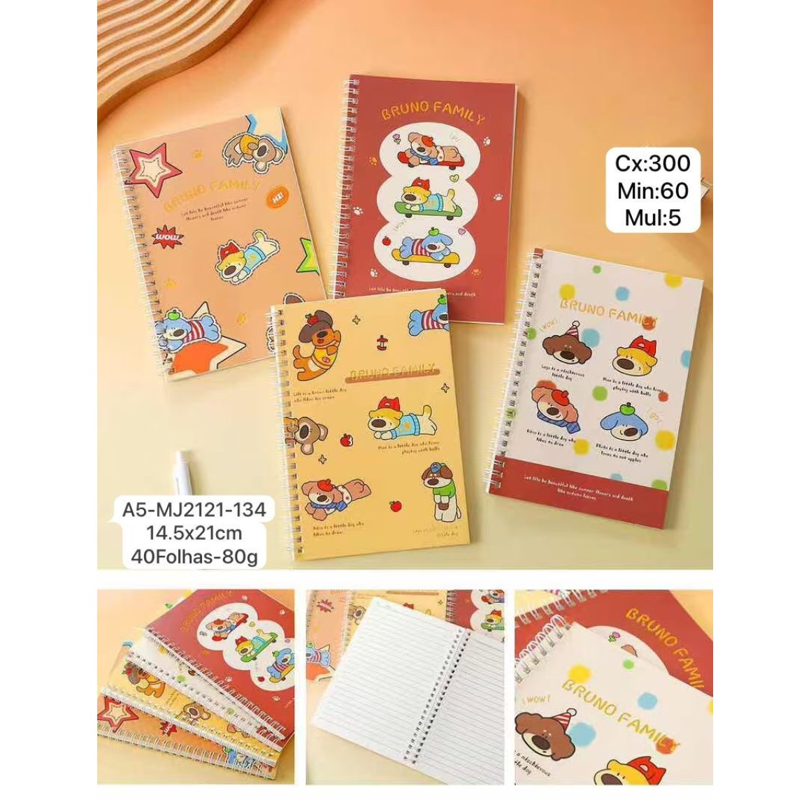 CADERNO - 5P/C. REF: A5-MJ-2121-134.---CX:300PÇS/MIN:50PÇS-MUL:5PÇS