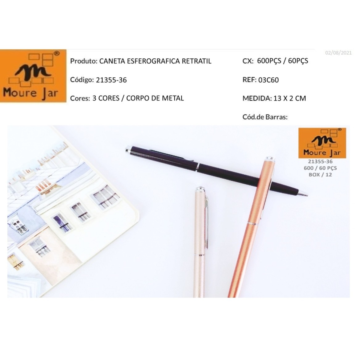 :MJ21355-36 CANETA ESFER.RE.CORPO METALC-----CX:1200PÇS/MIN:60PÇS-BOX:12PÇS
