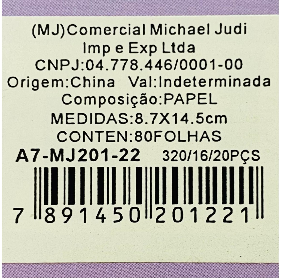 CADERNO. REF:A7-MJ201-22. BX C/20PC